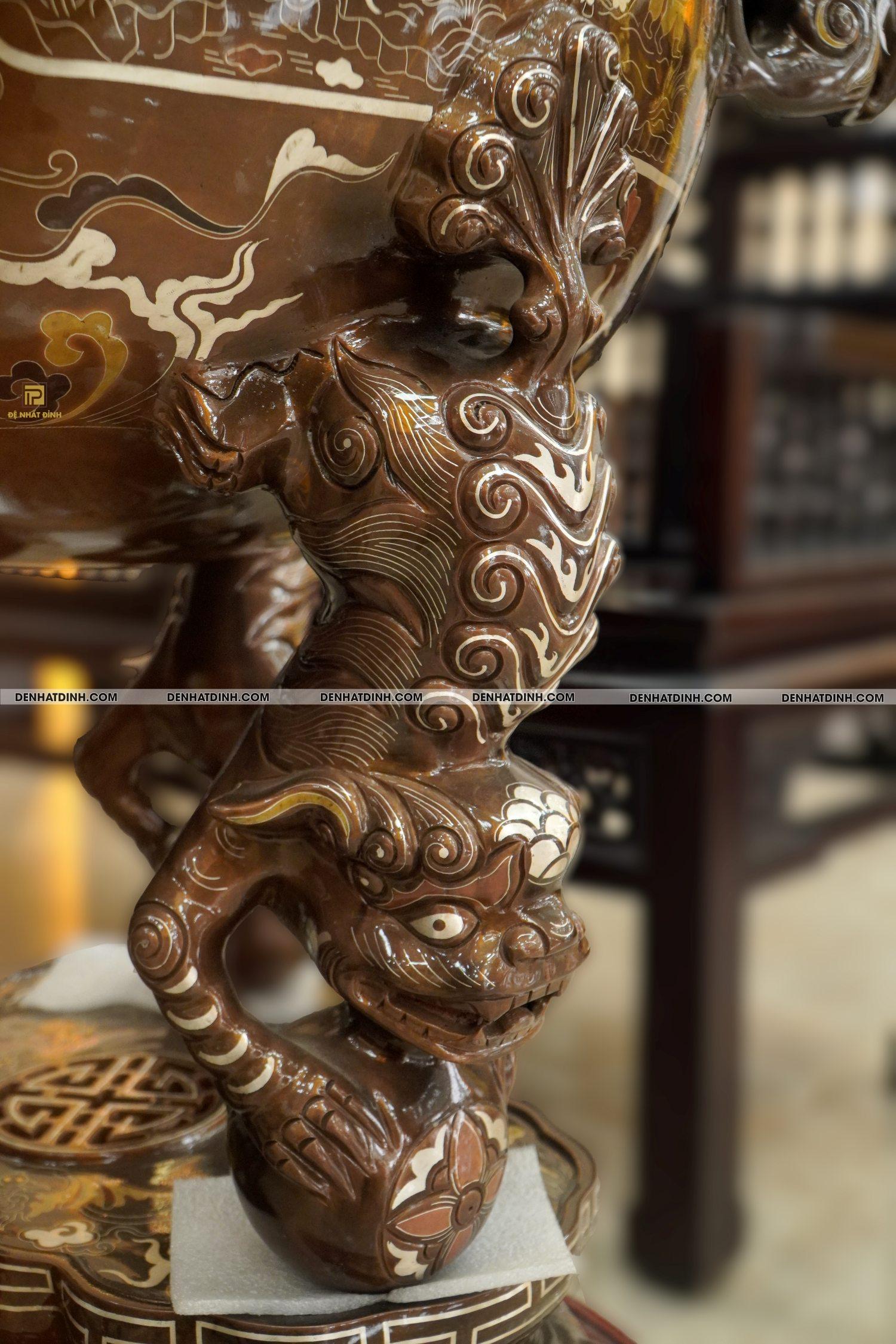 - Tên sản phẩm: Đỉnh Thất lân vờn cầu đồng đỏ 90 khảm ngũ sắc