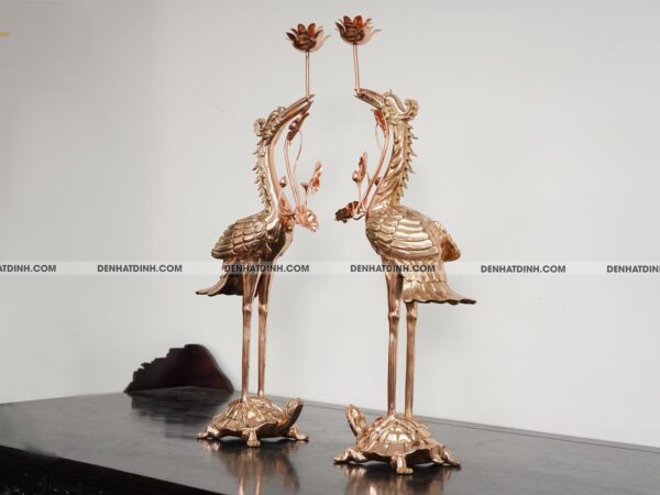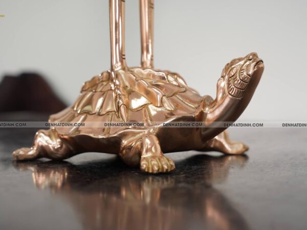 Khi kết hợp với rùa – biểu tượng của sự ổn định và trường tồn – cặp linh vật này thể hiện sự dung hòa âm dương, nâng cao sinh khí cho ngôi nhà, đồng thời củng cố phúc khí cho gia chủ. Việc bài trí đôi hạc đồng đỏ trên ban thờ giúp tăng cường năng lượng tích cực, hỗ trợ gia chủ trong công danh, tài lộc và sức khỏe.