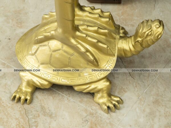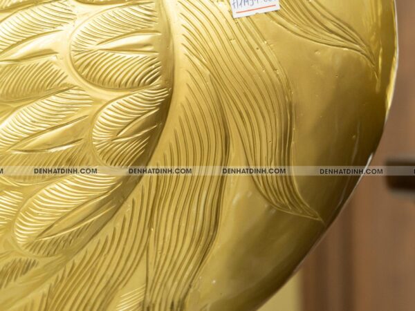 Toàn bộ thân hạc được thiết kế theo lối cổ truyền, với dáng đứng thẳng thanh thoát, cổ cao uốn cong mềm mại nhưng đầy khí chất uy nghiêm. Cánh chim được chạm khắc tỉ mỉ, từng chi tiết lông vũ đều thể hiện tay nghề điêu luyện của nghệ nhân. Đặc biệt, chân hạc được đặt vững chãi trên mai rùa, biểu tượng cho nền tảng vững chắc, kiên cố trong phong thủy.