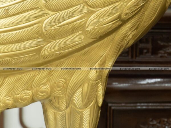 Chiều cao 1m97 giúp mẫu hạc đồng này trở thành điểm nhấn nổi bật trong bất kỳ không gian nào, đặc biệt là phòng thờ gia tiên, từ đường, đền chùa, nhà thờ họ… Đây là kích thước chuẩn phong thủy, hài hòa với các bàn thờ có kích thước lớn, tạo thế cân đối và tăng tính trang nghiêm cho không gian.