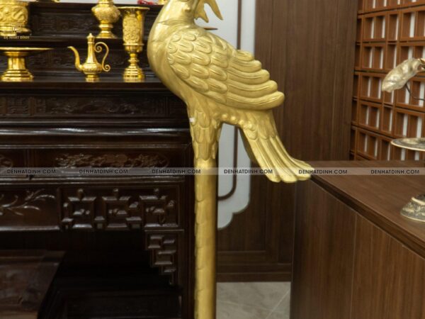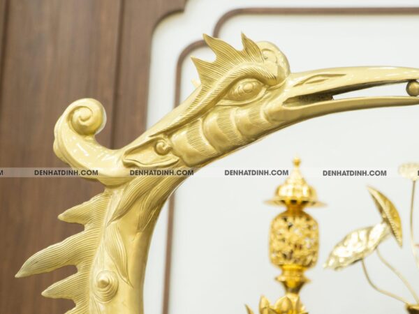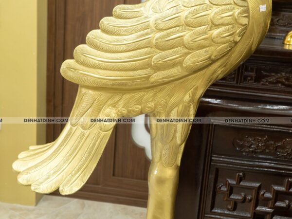 Chiều cao 1m97 giúp mẫu hạc đồng này trở thành điểm nhấn nổi bật trong bất kỳ không gian nào, đặc biệt là phòng thờ gia tiên, từ đường, đền chùa, nhà thờ họ… Đây là kích thước chuẩn phong thủy, hài hòa với các bàn thờ có kích thước lớn, tạo thế cân đối và tăng tính trang nghiêm cho không gian.