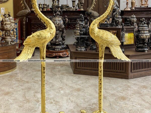 - Tên sản phẩm: Hạc chầu 1m5 ngậm cành dát vàng full