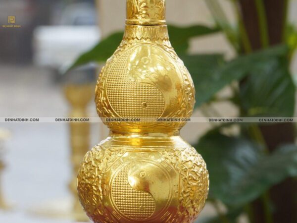 Hồ Lô Âm Dương Hoa Văn bằng đồng dát vàng 24K không chỉ là vật phẩm phong thủy chiêu tài trấn trạch, mà còn là tác phẩm nghệ thuật thủ công tinh xảo:
