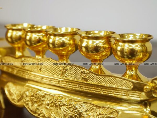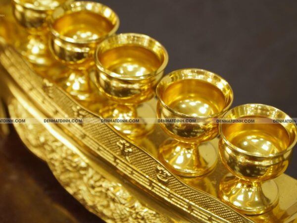 Hãy là người đầu tiên nhận xét “Khay chén 5 bằng đồng dát vàng 24k”