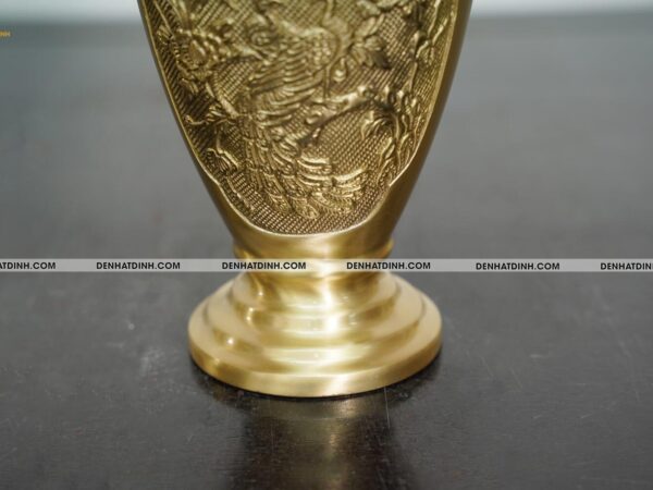 Lọ được làm từ đồng catut, có độ dày tiêu chuẩn, chịu lực tốt. Quá trình đúc thủ công giúp lọ có độ cứng cao, chống móp méo khi va chạm nhẹ. Lớp bề mặt không bị gỉ sét nếu được bảo quản đúng cách.