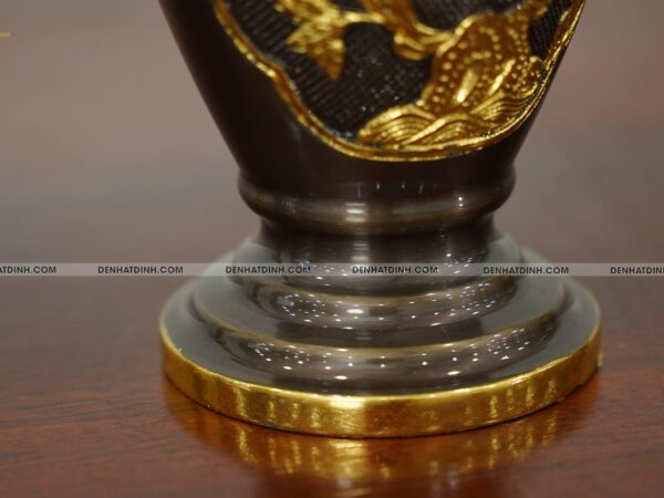 Lục bình cao bằng đồng dát vàng điểm là sản phẩm thủ công tinh xảo, mang phong cách truyền thống kết hợp nét sang trọng hiện đại.