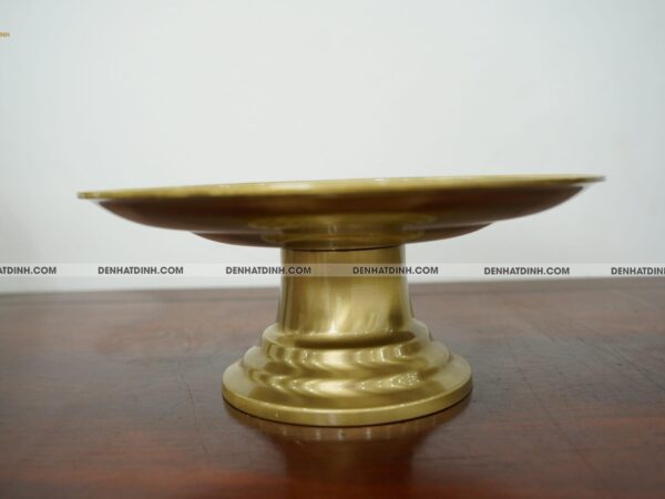 Việc sắp xếp mâm bồng trên ban thờ cần đảm bảo tính cân đối và trang nghiêm cho tổng thể không gian thờ tự. Mâm bồng thường được đặt ở vị trí trung tâm phía trước bát hương hoặc hai bên nếu sử dụng cặp mâm đối xứng. Trên mâm có thể đặt hoa quả tươi, bánh kẹo hoặc lễ vật tùy vào dịp lễ và phong tục từng vùng. Khi đặt mâm lên ban thờ, nên để mặt chữ Phúc hướng ra ngoài, vừa tạo vẻ đẹp thẩm mỹ vừa đúng phong thủy. Các loại quả được đặt nên chọn loại có ý nghĩa tốt lành như nải chuối, quả mãng cầu, táo đỏ hay phật thủ. Mâm nên được lau chùi sạch sẽ trước khi bày biện, đảm bảo tính thanh tịnh và tôn nghiêm. Nếu bàn thờ có nhiều tầng, mâm bồng nên đặt ở tầng giữa hoặc tầng dưới tùy theo thiết kế. Việc bày biện cần cân đối trái cây theo hình tròn, xếp đối xứng để tạo sự hài hòa về hình khối. Không nên đặt vật nặng hoặc sắc nhọn lên mâm vì sẽ làm hư hại bề mặt và làm mất đi ý nghĩa thanh sạch của lễ vật. Sau khi bày biện xong, nên kiểm tra mâm có bị nghiêng hay không để tránh đổ vỡ khi di chuyển hoặc lễ xong. Đối với các bàn thờ có chiều sâu nhỏ, kích thước 30cm là rất hợp lý vì không chiếm diện tích nhưng vẫn đủ chỗ cho nhiều loại lễ vật. Trong ngày rằm, mùng một hoặc dịp cúng giỗ, mâm bồng đóng vai trò chính trong việc trình bày mâm cúng và tạo không khí linh thiêng. Nếu đặt hai mâm hai bên, nên chia đều số lượng hoa quả và bố trí màu sắc tương phản nhẹ để tạo sự đối xứng đẹp mắt. Mâm bồng cũng nên được đặt cách mép bàn thờ một khoảng vừa đủ để dễ dàng quan sát và không bị vướng khi thắp nhang. Cách sắp xếp khéo léo không chỉ giúp mâm bồng phát huy giá trị thẩm mỹ mà còn thể hiện lòng tôn kính của gia chủ với tổ tiên và thần linh. Sự xuất hiện của mâm bồng vàng nguyên bản trên bàn thờ tạo nên điểm nhấn sáng sang trọng, làm nổi bật các vật phẩm khác và tôn thêm vẻ đẹp truyền thống cho không gian linh thiêng.