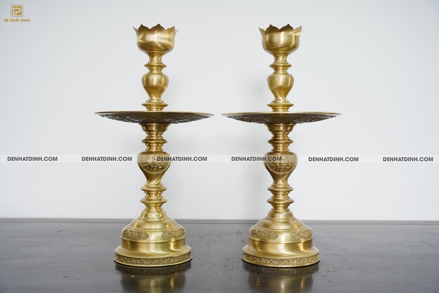 Trọng lượng mỗi cây nến dao động khoảng 3 – 4kg, đảm bảo độ chắc chắn khi bài trí trên ban thờ. Toàn bộ sản phẩm được đúc từ đồng cattut nguyên chất, dòng đồng có độ bền cao, khó biến dạng, có khả năng giữ màu lâu dài và hạn chế oxy hóa hiệu quả.