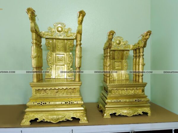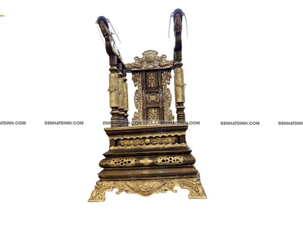 Ngai thờ bằng đồng là một trong những vật phẩm thờ cúng linh thiêng, thường đặt tại trung tâm bàn thờ gia tiên, bàn thờ tổ dòng họ hoặc tại các nhà thờ họ, từ đường. Sản phẩm trong hình là mẫu ngai thờ đúc bằng đồng vàng, chạm khắc thủ công tinh xảo, mang đậm dấu ấn truyền thống văn hóa tâm linh Việt.