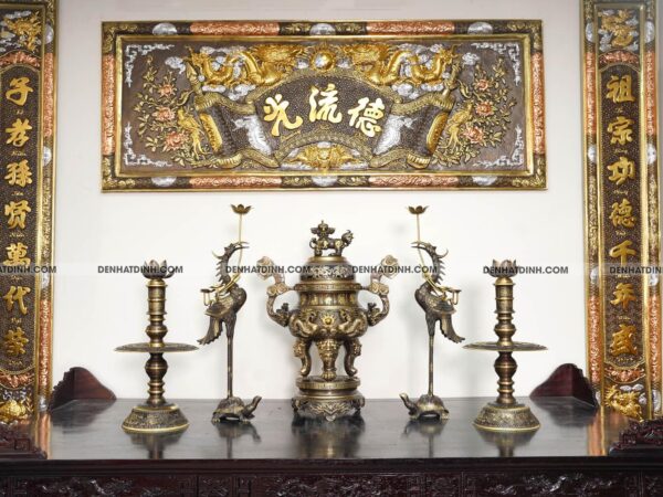 Với thiết kế tinh xảo và chất liệu cao cấp, bộ sản phẩm này mang lại vẻ sang trọng và trang nghiêm cho gian thờ của bạn. Hoa văn CN và bề mặt hun cổ tạo nên một tác phẩm nghệ thuật thực sự, làm nổi bật không gian thờ cúng.