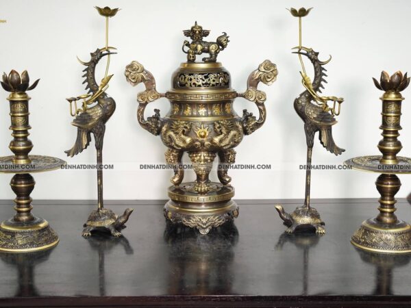 Nếu bạn đang tìm kiếm một bộ ngũ sự hoàn hảo để trang trí và thờ cúng, bộ ngũ sự song long 65 mẫu 3 hoa văn CN 36kg là lựa chọn tuyệt vời. Hãy liên hệ với chúng tôi ngay hôm nay để được tư vấn và đặt hàng.