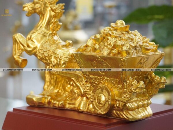 Tượng ngựa kéo xe tiền dát vàng 24K là vật phẩm phong thủy và quà tặng cao cấp, mang lại nhiều giá trị: