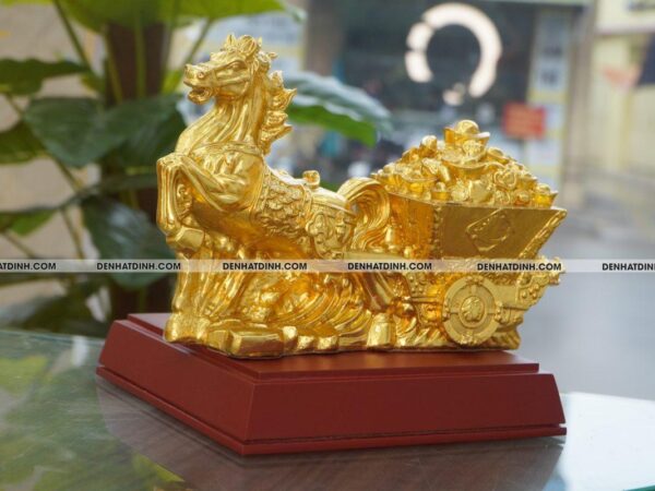 Ngựa là linh vật biểu trưng cho sức mạnh, tốc độ và ý chí kiên cường. Khi kết hợp với xe chở tiền vàng, hình tượng này trở thành biểu trưng cho công danh thuận lợi, tài lộc dồi dào và thịnh vượng lâu bền.