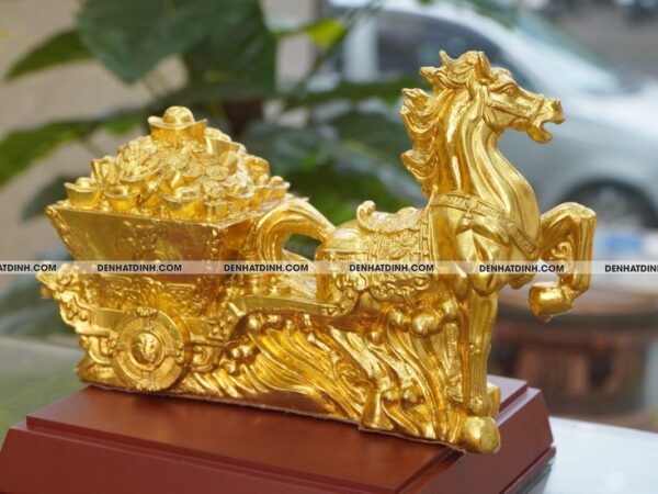 Tượng ngựa kéo xe tiền dát vàng 24K là vật phẩm phong thủy và quà tặng cao cấp, mang lại nhiều giá trị: