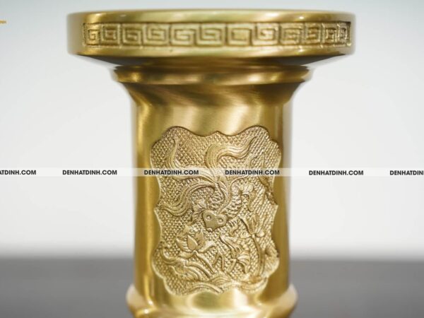 Màu sắc vàng sáng tự nhiên của đồng làm tăng sự sang trọng và uy nghiêm cho bàn thờ.