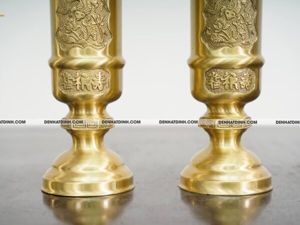 Màu sắc vàng sáng tự nhiên của đồng làm tăng sự sang trọng và uy nghiêm cho bàn thờ.