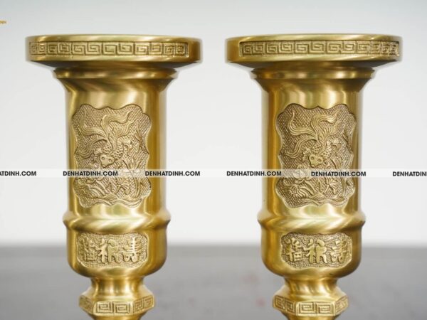 Màu sắc vàng sáng tự nhiên của đồng làm tăng sự sang trọng và uy nghiêm cho bàn thờ.