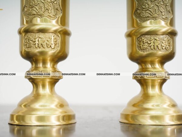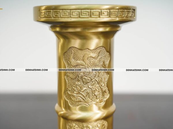 Màu sắc vàng sáng tự nhiên của đồng làm tăng sự sang trọng và uy nghiêm cho bàn thờ.