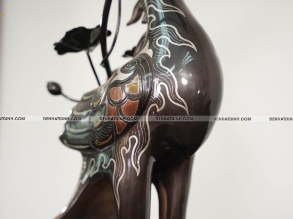Sử dụng kỹ thuật khảm ngũ sắc (vàng, bạc, đồng đỏ, đồng vàng, đồng xanh) tinh xảo. Các chi tiết được chạm khắc và khảm thủ công bởi nghệ nhân lành nghề, tạo nên những đường nét sắc sảo và liền mạch.