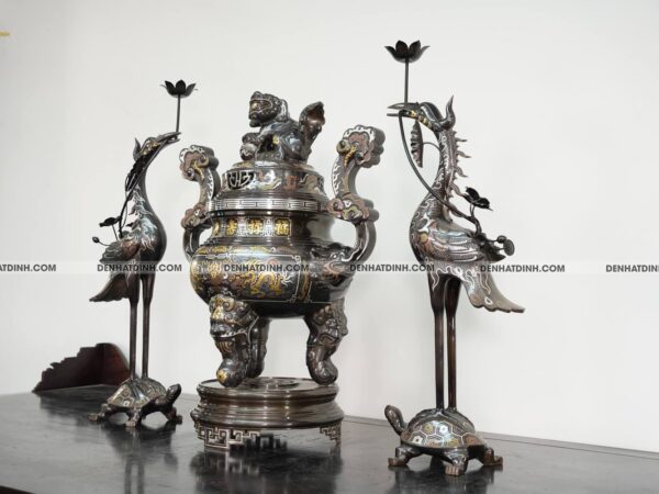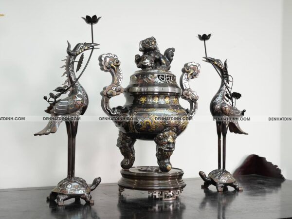 - Bộ phận: 1 đỉnh đồng, 2 nến đồng, 2 hạc đồng