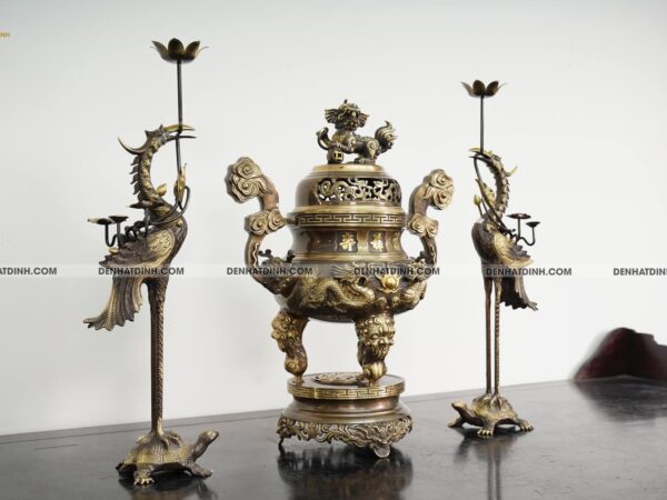- Đặt chân nến: Đặt chân nến ở hai bên của đỉnh đồng, đối xứng với đôi hạc thờ.