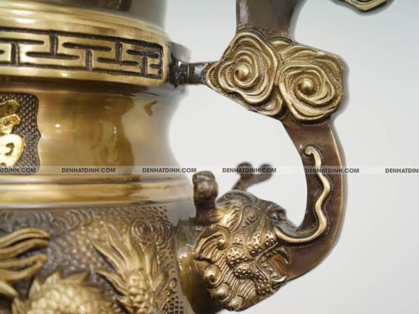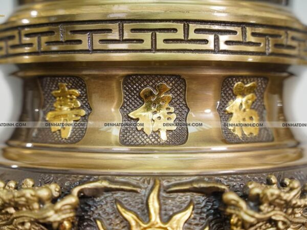 Sản phẩm được điểm vàng 24K, tạo nên một lớp mạ vàng sang trọng và bền màu. Điều này không chỉ tăng thêm giá trị thẩm mỹ mà còn bảo vệ bề mặt đồng khỏi sự oxy hóa, giúp sản phẩm giữ được vẻ đẹp qua thời gian.