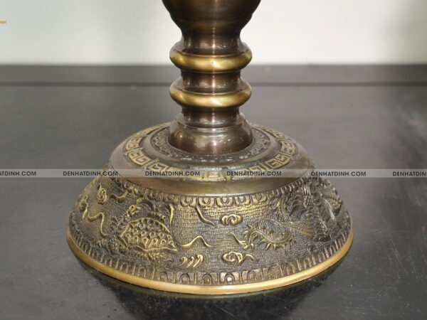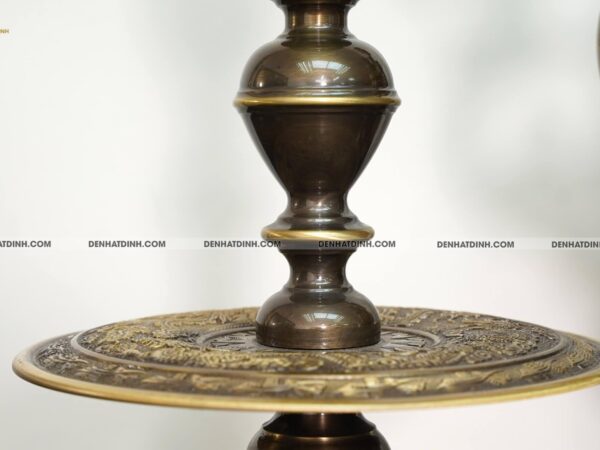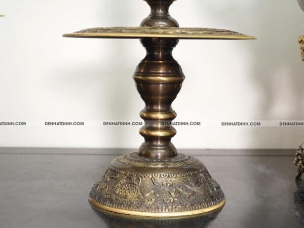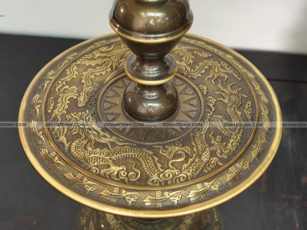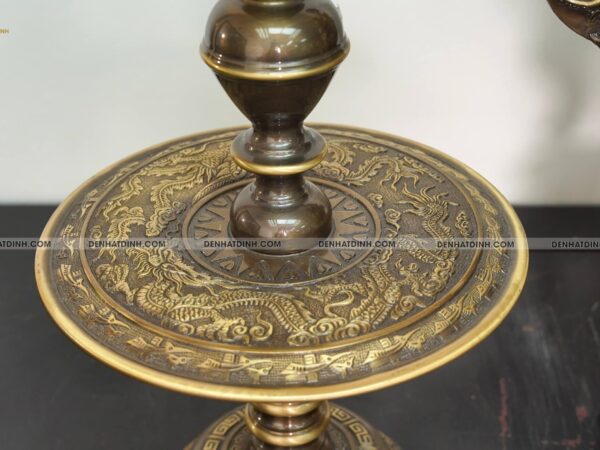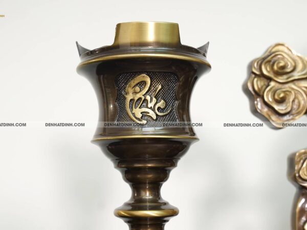 - Chân nến được đặt hai bên đỉnh đồng, tượng trưng cho mặt trời thuộc về phần dương, tạo sự cân bằng âm dương trong không gian thờ cúng.