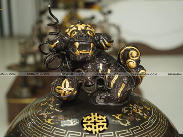 – Tổng quan đỉnh Thất lân đồng đỏ 1m2 khảm tam khí có 7 linh vật Kỳ Lân được sắp xếp trải đều từ trên xuống dưới. Nắp đỉnh có chú kỳ lân với hình đứng ngang rất oai dũng, thân đỉnh hình tròn được đúc nổi 3 chú kỳ lân tạo thành 3 góc tam giác đều lồi hẳn ra bên ngoài trong thoáng qua giống kiểu thiết kế tai voi. 3 chú kỳ lân còn lại được phân đều ở 3 chân đế của Đỉnh Đồng.