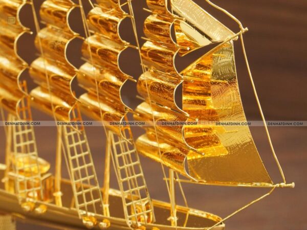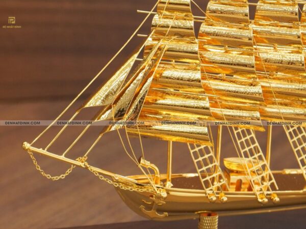 Thuyền buồm dát vàng là một tuyệt tác thủ công, được chế tác tinh xảo với chất liệu vàng 24K cao cấp, mang lại vẻ đẹp sang trọng và đẳng cấp.