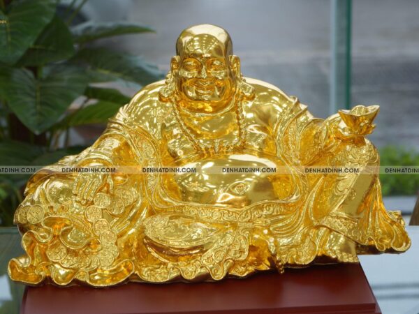 1. Đặc điểm của tượng Di Lặc Dựa Bao Tiền Bằng Đồng Dát Vàng 24K
