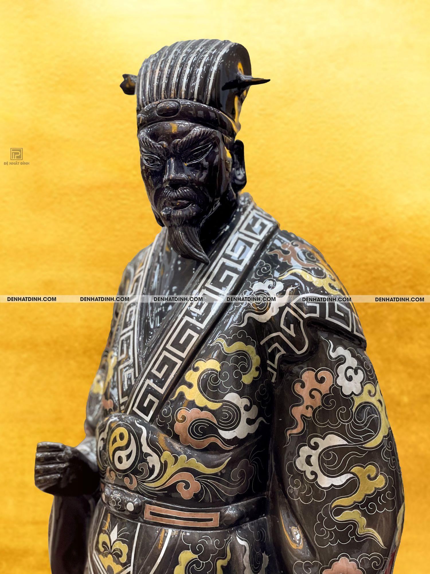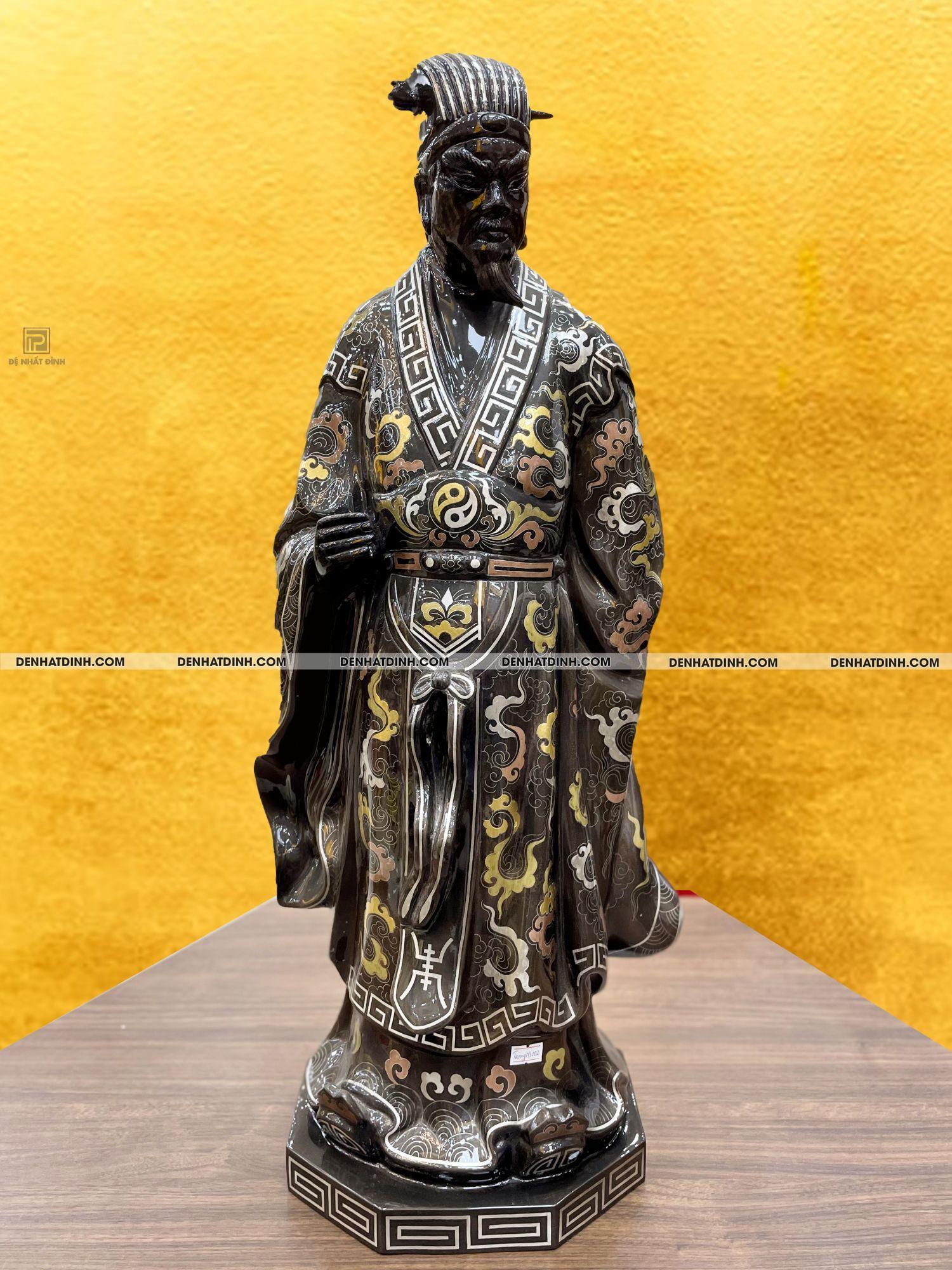 Tượng Gia Cát Lượng bằng đồng khảm ngũ sắc cao 70cm là tác phẩm nghệ thuật độc đáo, tôn vinh vị quân sư kiệt xuất của thời Tam Quốc. Được đúc thủ công từ đồng đỏ nguyên chất và khảm ngũ sắc tinh xảo, bức tượng tái hiện hình ảnh Gia Cát Khổng Minh với thần thái uy nghi, trí tuệ và khí chất thanh cao. Đây là vật phẩm phong thủy được nhiều gia chủ, doanh nhân, trí thức và người yêu lịch sử lựa chọn để trưng bày phòng khách, phòng làm việc, thư phòng hoặc không gian thờ tự.