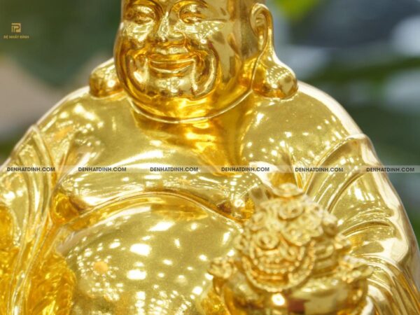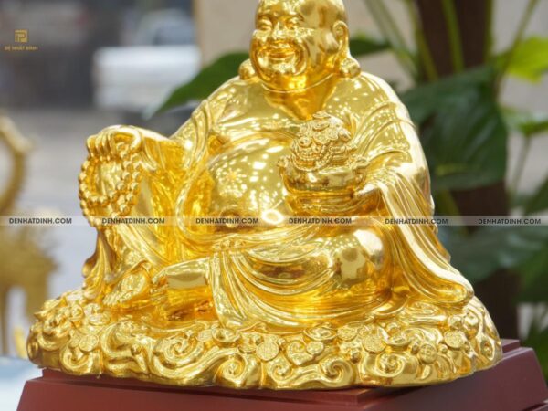 Tượng Phật Di Lặc Cầm Hũ Tiền Bằng Đồng Dát Vàng – Biểu Tượng Phú Quý Và May Mắn