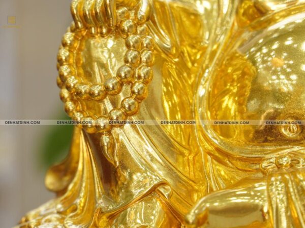 - Tên sản phẩm: Tượng Phật Di Lặc cầm hũ tiền bằng đồng dát vàng