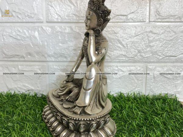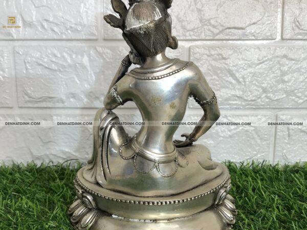 Mạ bạc cổ thủ công, xử lý ánh màu trầm ấm – tái hiện vẻ đẹp cổ kính của tượng Tây Tạng.