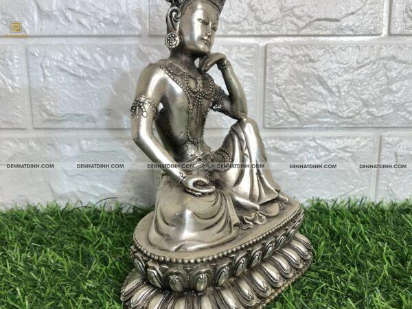 Được chế tác từ đồng nguyên chất, mạ bạc thủ công và hoàn thiện với sắc ánh cổ trầm mặc, bức tượng mang đến vẻ đẹp vừa linh thiêng vừa nghệ thuật – một tác phẩm xứng đáng cho những không gian tâm linh tinh tế.