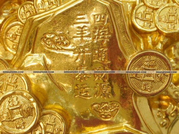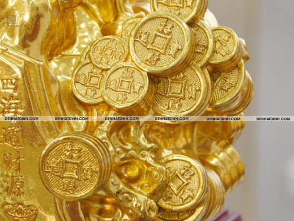 Bệ tiền phong thủy: Bệ tượng được tạo hình đồng tiền cổ xếp lớp, tượng trưng cho tài lộc dồi dào, tiền bạc sung túc, hỗ trợ tối đa cho việc kinh doanh, đầu tư và phát triển sự nghiệp.