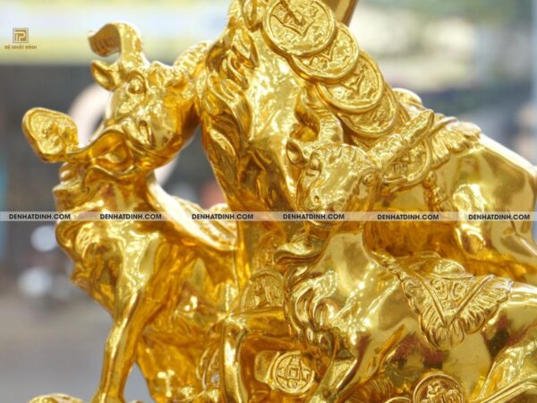 Hình tượng Tam Dương mạnh mẽ: Ba chú dê đứng hiên ngang trên bệ tiền vàng tượng trưng cho sự trỗi dậy mạnh mẽ, khai mở vận khí, đem lại khởi đầu thuận lợi, sự nghiệp hanh thông.
